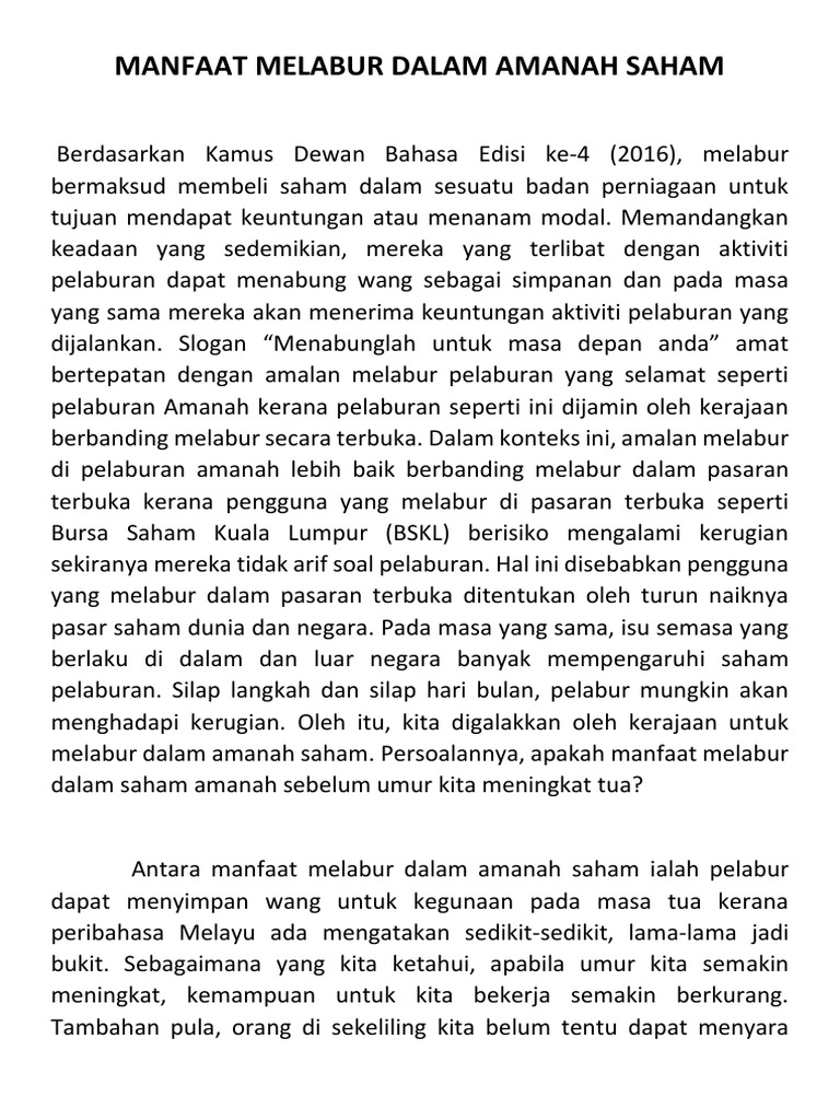 Manfaat Melabur Dalam Amanah Saham Pdf